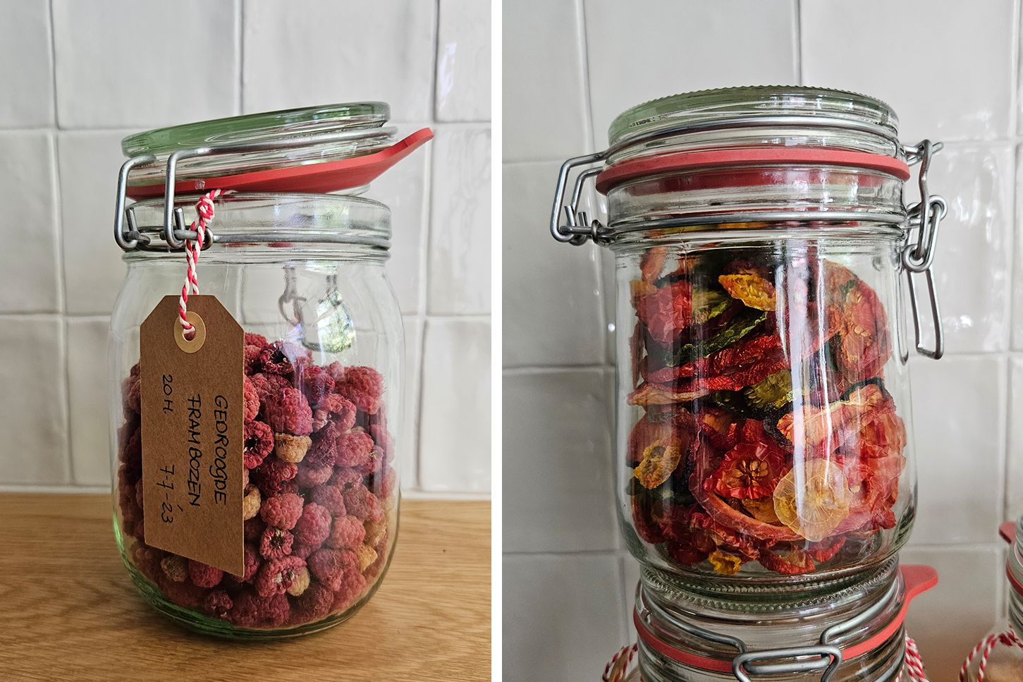 Het drogen van groenten, fruit en zelfs kruiden is superhandig om het langer te bewaren en nooit meer echt iets weg te gooien. Door het drogen blijft de smaak supergoed bewaard en wordt zelfs veel intenser. Het vocht verdampt dus de kruiden, groenten of fruit wat je droogt krimpt ook nog eens dus het neemt bijna geen ruimte in. Zelf gebruik ik een voedsel droger (dehydrator) voor het drogen maar je kan ook een gewone ovn gebruiken. Hieronder lees je er meer over.