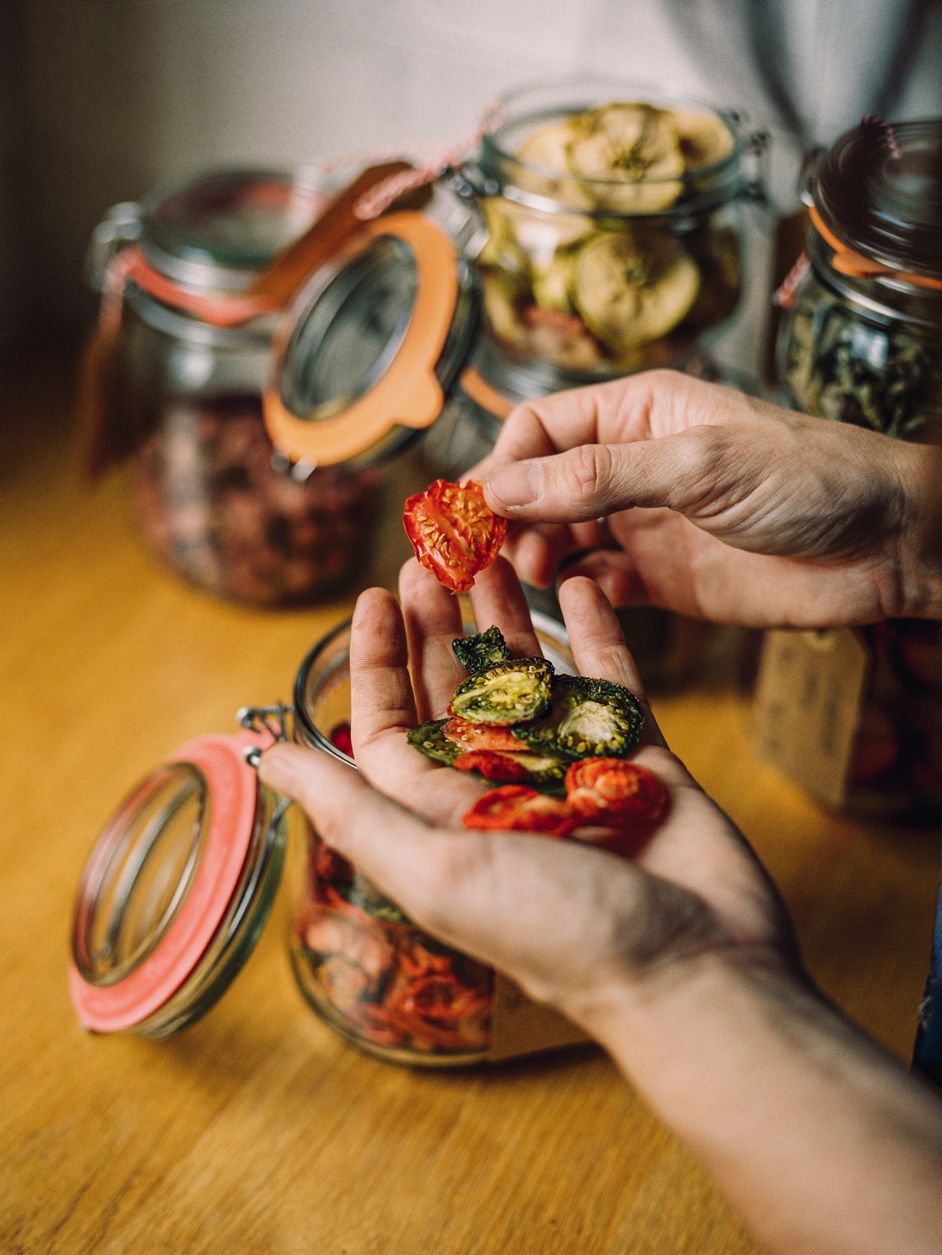 Het drogen van groenten, fruit en zelfs kruiden is superhandig om het langer te bewaren en nooit meer echt iets weg te gooien. Door het drogen blijft de smaak supergoed bewaard en wordt zelfs veel intenser. Het vocht verdampt dus de kruiden, groenten of fruit wat je droogt krimpt ook nog eens dus het neemt bijna geen ruimte in. Zelf gebruik ik een voedsel droger (dehydrator) voor het drogen maar je kan ook een gewone ovn gebruiken. Hieronder lees je er meer over.