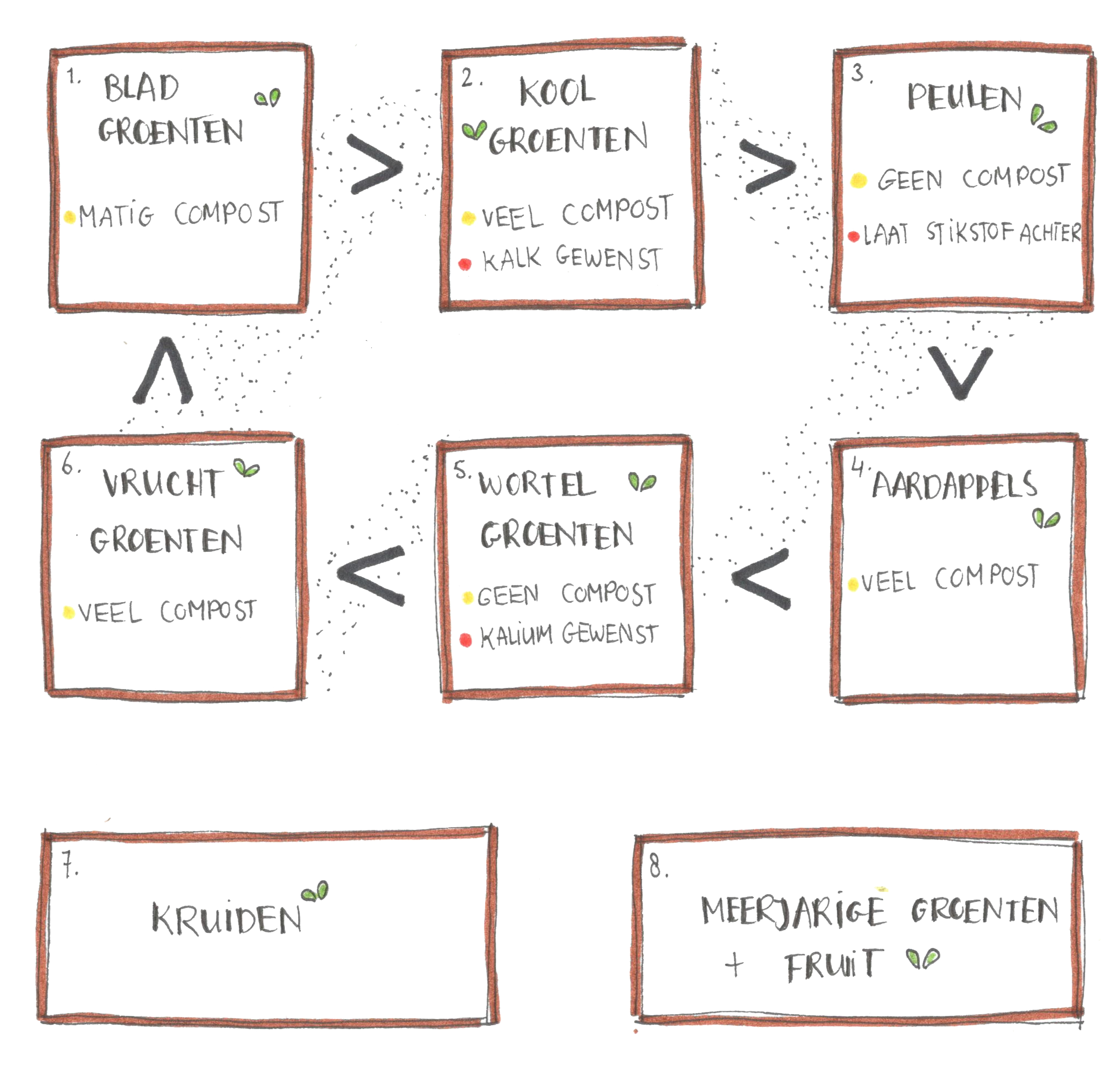 Daarnaast helpt een plan je om bewust met je bodem om te gaan. Door slim te werken met wisselteelt in sommige gewasgroepen en vaste vakken hoef je niet te spitten, verstoor je het bodemleven dus nauwelijks en laat je de natuur voor jou werken.